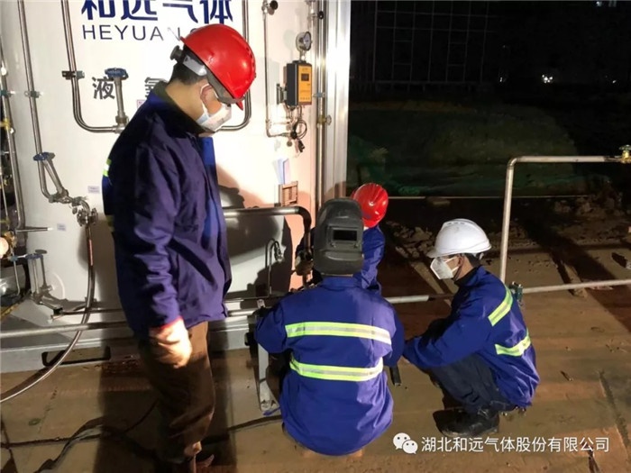 1月30日,黃岡市大量確診病人被轉(zhuǎn)移至大別山醫(yī)院,瓶裝醫(yī)用氧面臨供應(yīng)危機(jī),鄭正鵬立刻再次聯(lián)系院方溝通儲罐供氣一事,最終確定將瓶裝供氣模式更改為儲罐供氣,出于對和遠(yuǎn)氣體的信任,院方委托和遠(yuǎn)建設(shè)現(xiàn)場氣站,并要求盡快完成氣站建設(shè),并投入使用。