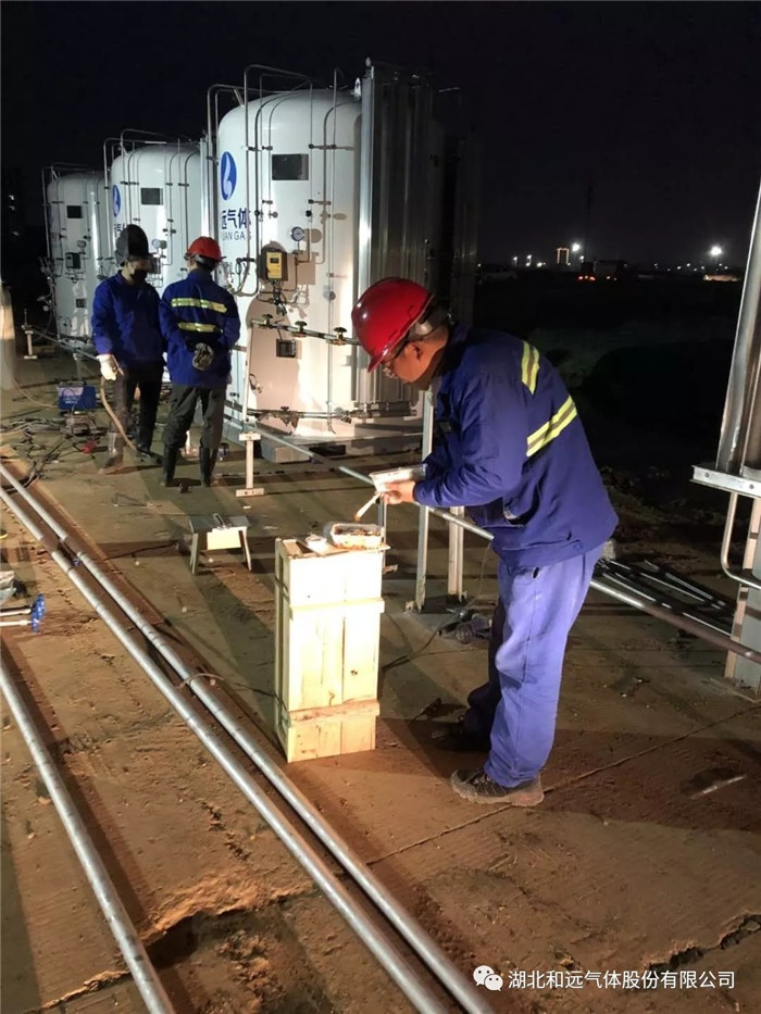 2月1日上午10點(diǎn),隨著大別山醫(yī)院醫(yī)用氧站的建設(shè)材料全部到達(dá),技術(shù)主管周軍和黃石和遠(yuǎn)安全員劉淼帶領(lǐng)項(xiàng)目施工人員立即開始施工,他們連續(xù)工作18個小時沒有休息,直至2月2日凌晨4點(diǎn)。