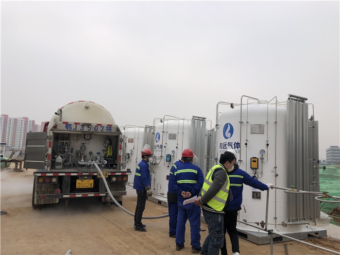 與此同時,楊濤總經理還組織專人加強與各家醫院的銜接,提前對每家醫院的供氣設施進行了詳細的摸排查。針對部分重點醫院醫用氧氣需求急劇增加,醫用氧儲存輸送設施不足、氧氣管網設計壓力不夠的問題,他安排組織市場、技術、項目人員深入一線、采取臨時和長期相結合的方案,先后為武漢市金銀潭醫院、黃岡大別山區域醫療中心醫院、黃岡市傳染病醫院、宜昌市中心人民醫院江南院區、仙桃市第一人民醫院、孝感市中心醫院新建和擴建了醫用氧供氣實施……