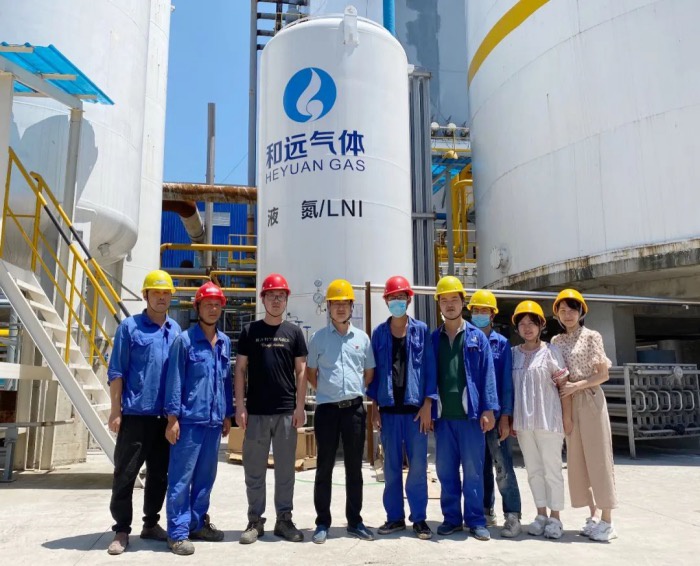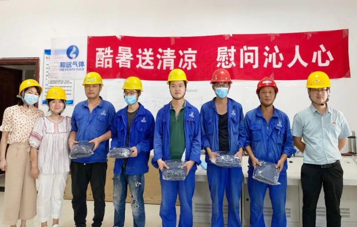 潛江項目投產在即,時間緊、任務重,壓力大,受公司黨支部委托,和遠氣體黨支部組織委員向松庭一行前往潛江和遠15000空分及年產7萬噸食品級液氮項目現場,為在高溫下堅守一線的工作人員送去組織的關心。