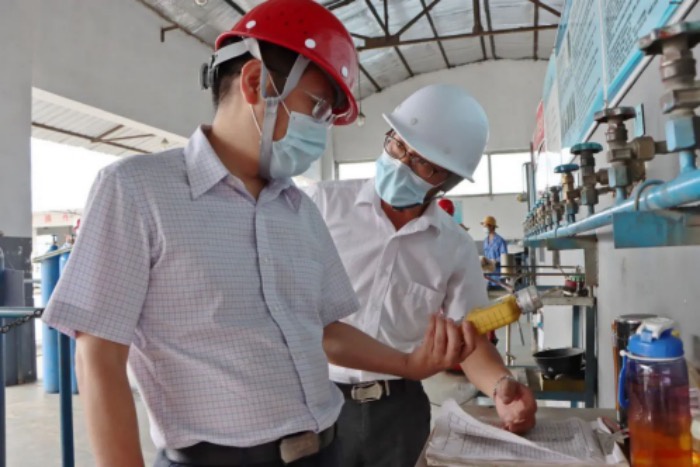 疫情過后,十堰和遠生產物流出現逆勢增長,生產部員工不畏高溫,克服人員階段性缺口較大困難,每天加班加點,5至7月總銷售量比去年同期增長了25.95%。李欣弈一行一到十堰和遠,直赴充裝車間、鋼瓶檢驗站等生產一線,代表公司對大家堅守崗位,戰酷暑、穩生產的擔當奉獻精神表示感謝。